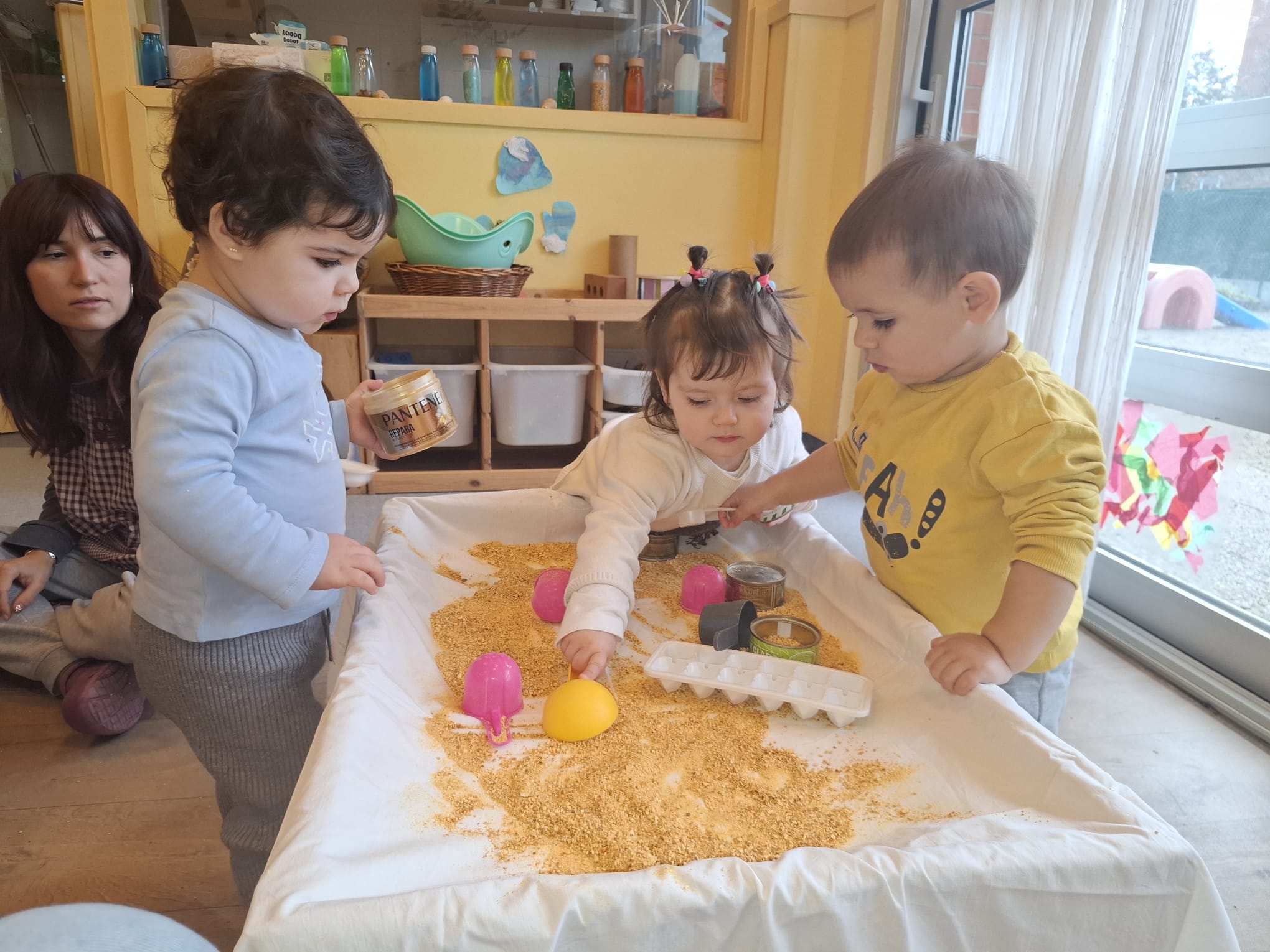 A les estances de 2 a 3 anys i amb la finalitat d’aconseguir una atenció més indivualitzada, un joc més ric i una millor observació dels infants per part de les educadores, plantegem els DESDOBLAMENTS en activitats com la psicomotricitat i l’experimentació, dividint els grups en dos i reduïnt d’aquesta manera el nombre d’infants per educadora.