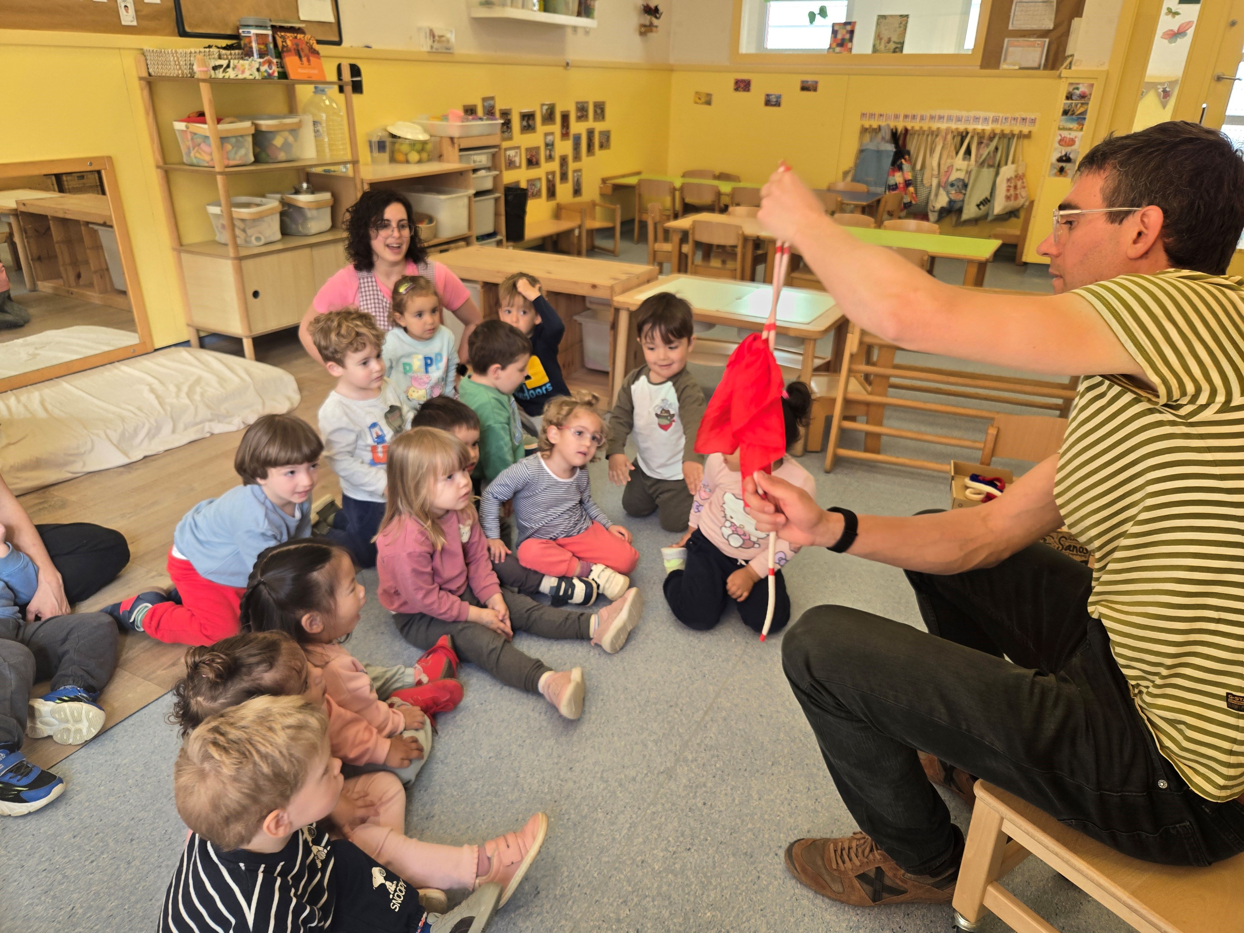 Aquest matí l’AMPA de la nostra llar ha preparat una sessió de màgia pels infants de les estances de 2 a 3 anys. L’Eloi ha estat l’encarregat de sorprendre i deixar bocabadats tant als infants com a les educadores amb els seus jocs de màgia.