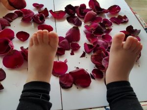 Per això, una vegada, els pètals de Rosa ja s’han assecat, els podem utilitzar com una eina més per convidar a diferents propostes als infants, on fomentarem la seva curiositat que els impulsa a tocar i remenar, aprenent amb la pròpia acció.