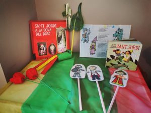 Aquests contes poden ser “La Llegenda de Santa Jordina”, “El drac, Sant Jordi, la princesa i la rosa”… i molts més que tenim en el mercat.