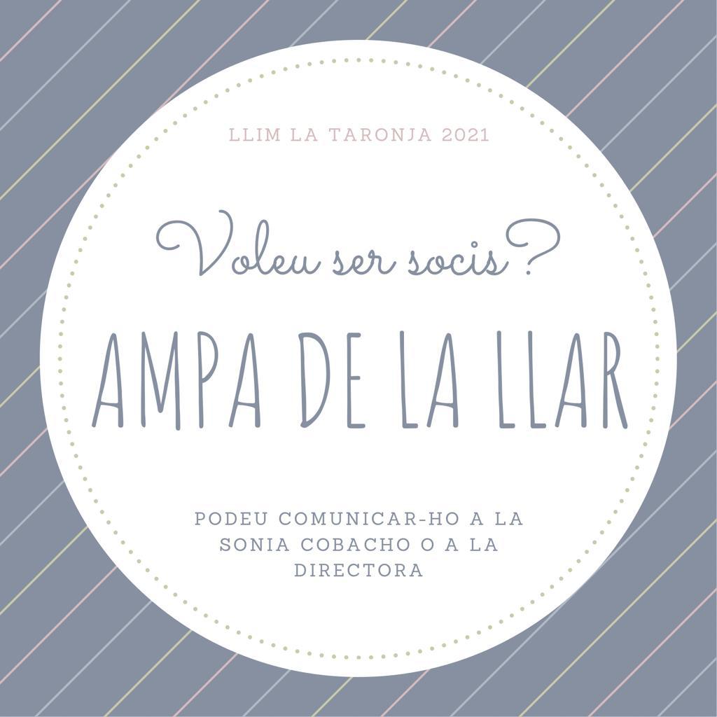 Hi ha unes mares i pares de la Llar amb ganes de col.laborar amb el centre i ajudar en benefici dels infants. És per aquesta raó que us animem a la resta de famílies a formar-ne part, i a participar amb l’AMPA en la mesura de les vostres possibilitats. TOTS FEM ESCOLA!