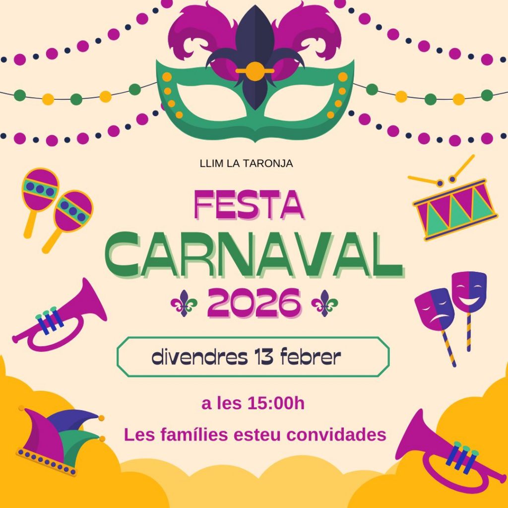 Divendres 13 de febrer celebrarem la festa de Carnaval a la Llar. Els infants podran venir disfressats de casa a primera hora del matí, de qualsevol temàtica. La disfressa és lliure. Tampoc és obligat comprar-ne una. Podeu fer anar la imaginació, tot reciclant robes i materials que tingueu a casa. Amb un complement divertit també n’hi ha prou.