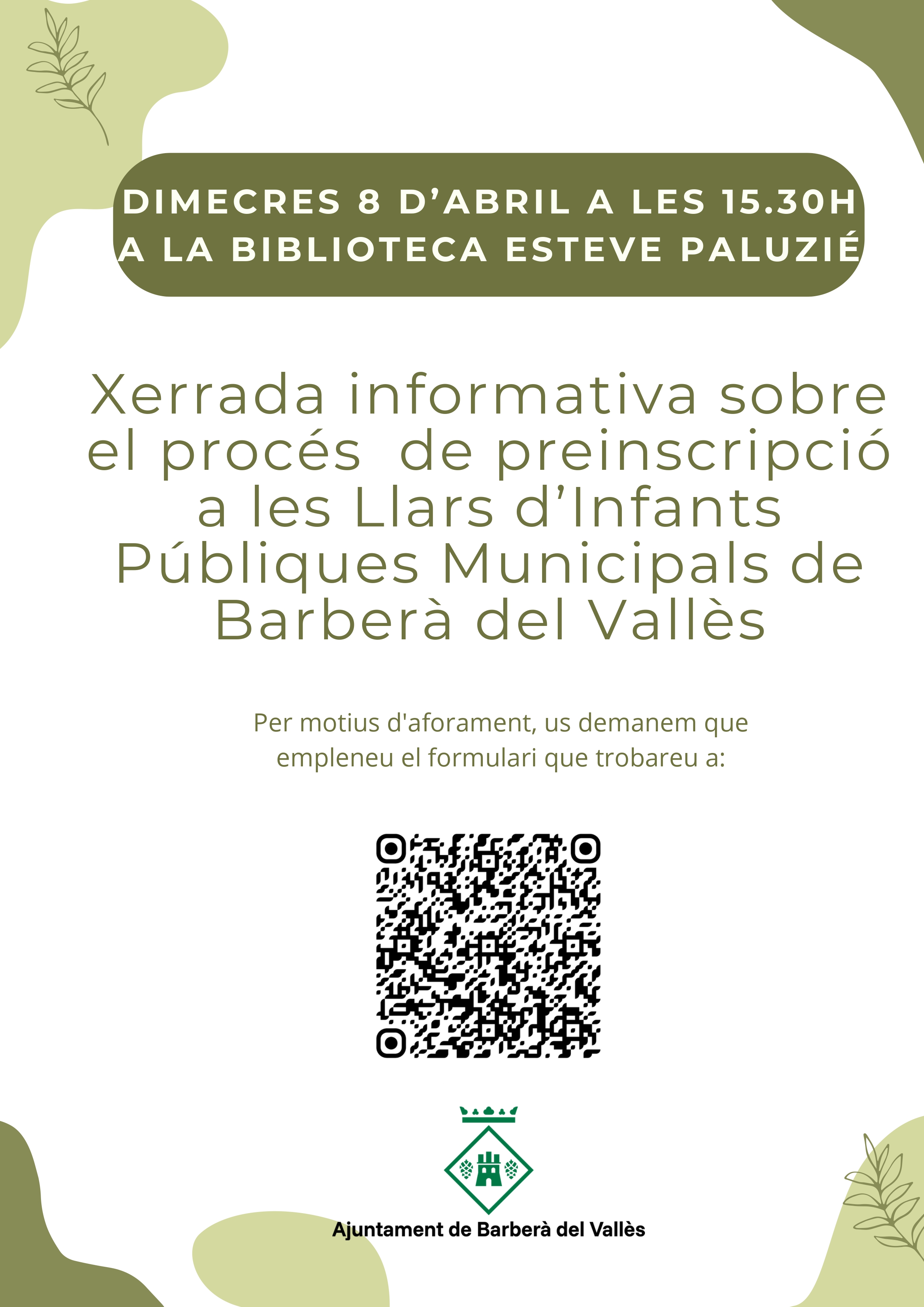 Xerrada informativa procés de preinscripció i matrícula de les llars d’infants pel curs 2025-2026