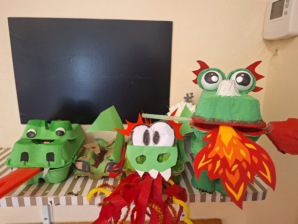 D’altra banda, amb les famílies, hem posat bonica la llar, decorada amb dracs que han fet els infants més grans i amb roses que han fet els més petits i petites.