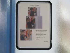 A les portes de les aules estan penjades les cartelleres, que es van renovant periòdicament i que fan referència a les situacions que dia a dia viuen els infants a la llar.