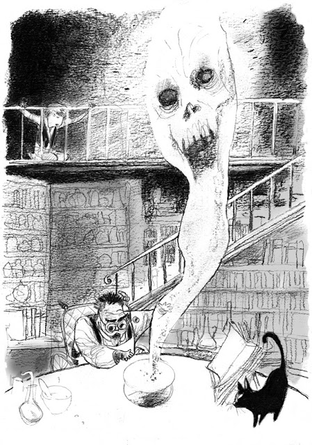 “En Mortimer té dotze anys. Treballa per al professor Haggath, que és bruixot, tot i que molts no coneixen la seva professió, ja que si no, probablement, acabaria la foguera. En Haggath està preparant una poció molt difícil. Un cop acabada, encarrega a en Mortimer que la porti al cementiri. L’avisa que l’ampolla ha d’arribar intacta, i que no es pot vessar ni una gota. Si una sola gota cau en un altre lloc, podria desencadenar un fet preocupant”.