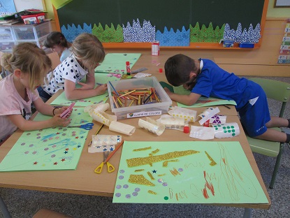 Som molt creatius. Els nens i nenes de P4 podem ser tan creatius amb papers, gomets i colors, com amb una càmera de fer fotos, ens fem fotos entre nostres. Super divertits.!!!!!!
