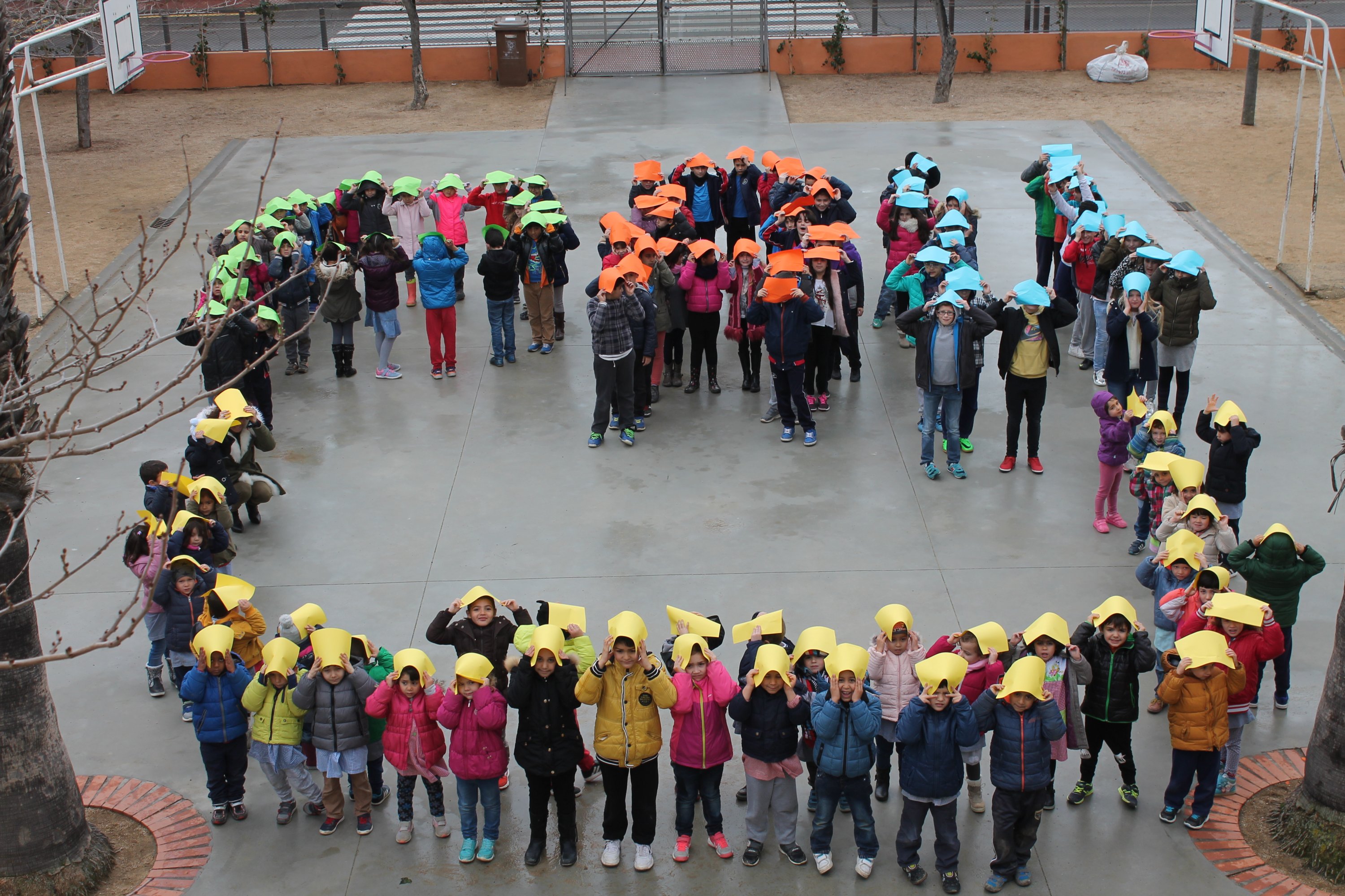 Avui hem celebrat el Dia Escolar de la No Violència i la Pau. Hem fet una foto a vista d’ocelll amb les lletres que formen la paraula PAU i els nens i nenes de 6è han llegit un manifest molt maco! Per acabar el matí hem cantat la cançó, versionada per Macaco, Qualsevol nit pot sortir el sol.
