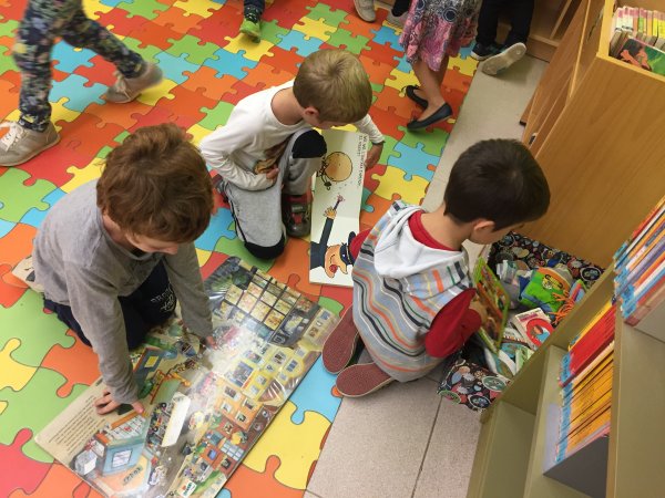 El primer divendres de principi de mes, els nens i les nenes de P-5 anem a la Biblioteca de Sant Antoni de Calonge a mirar i llegir contes.