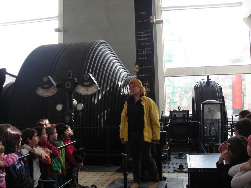 Un cop a fora vam tornar a muntar amb els 4×4 i ens van pujar a la part més alta on una altra monitora ens va explicar curiositats sobre el funcionament de la maquinària dels ascensors per a baixar i pujar dels pous Albert i M. Teresa, sí, sí els pous tenen noms de persona!. Hi havia un cable d’acer impressionant!. Vam fer moltíssimes preguntes i per a totes hi va haver una resposta.