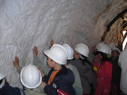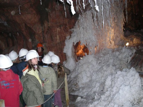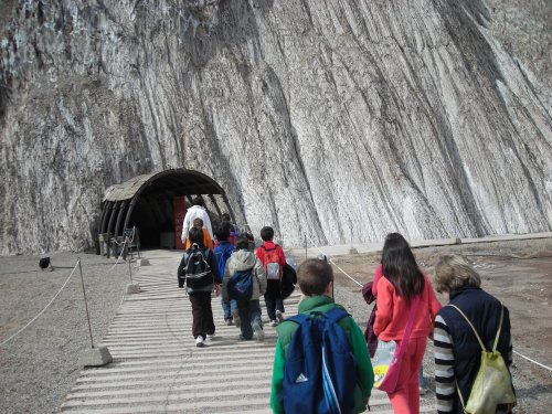 Abans d’entrar, ens va dir que podíem passar la mà per la paret del túnel i tastar la sal. A dintre era impressionant: la poca llum, els colors blanc, rosa, taronja, vermellós, marró… de les parets i el sostre, les estalactites i estalagmites de sal formant figures capricioses, les eines velles i recobertes de sal que havien deixat els miners, el silenci i la sensació que en qualsevol moment podies quedar-t’hi atrapat. Et podies imaginar una mica les dures condicions en les que havien treballat homes i nens anys enrera.