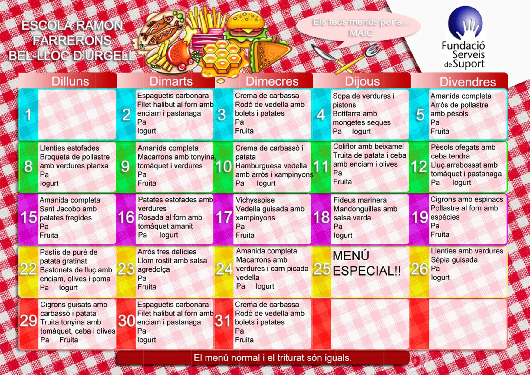 Menú-ESCOLA-RAMON-FARRERONS-Maig-17-2 Published 25 d'abril de 2017 at 1751 × 1240 in Menú-ESCOLA-RAMON-FARRERONS-Maig-17-2 ← Anteriors Següent →