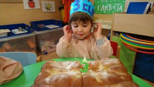 Tot i així a mig matí, cada día, a l’ escola bressol, des de fa tres anys , els oferim fruita per menjar.