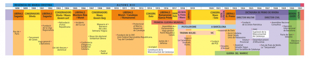 Per analitzar bé una font és necessari contextualitzar-la en el temps i l’espai. aquí teniu un document que us ajudarà a fer-ho on apareix la cronologia de la història contemporània d’Espanya.
