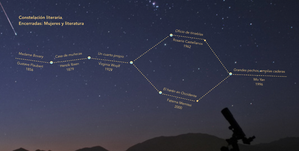 Rosa Linares, Guadalupe Jover y otros profesores han ideado una actividad que me gustaría llevar a cabo alguna vez: las constelaciones literarias. Consiste en trazar un canon literario a través de itinerarios, trabajando, a partir de fragmentos, las perspectivas y problemáticas de cada conjunto de obras.