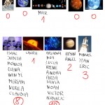 Més endavant, els alumnes van seguir enraonant i van recòneixer que també podia haver estat un reclam per justificar la realització del “Projecte d’Escola”. Donades totes les pistes analitzades van deduir que el tema general del mateix, era “l’ESPAI” i seguidament es va recollir un ventall de possibles subtemes del seu interés a investigar: ASTRONAUTES, EXTRATERRESTRES, FORATS NEGRES, CONSTEL•LACIONS, LA NASA, MART, JÚPITER, CONQUESTA DE LA LLUNA, SATURN, TECNOLOGIA ESPAIAL, TERRA, SISTEMA SOLAR …