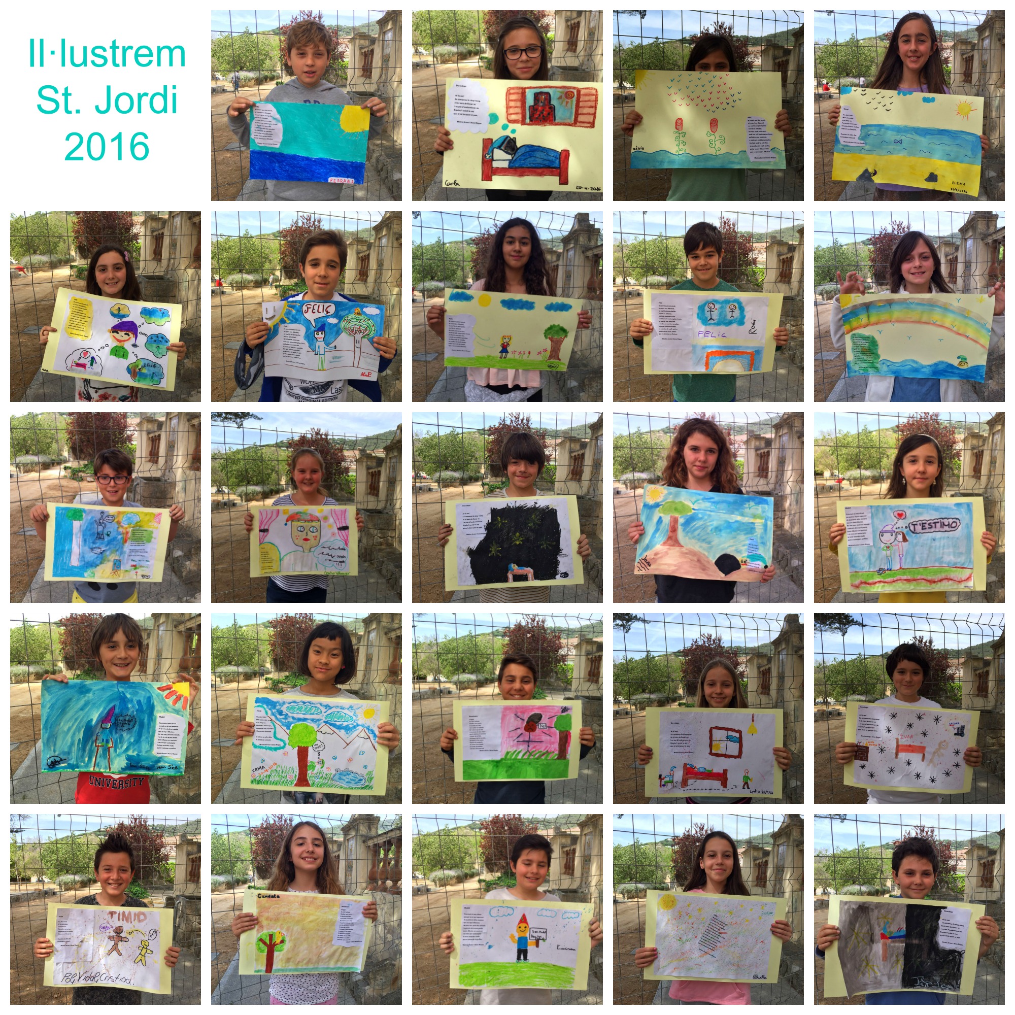 La setmana de St. Jordi vam gaudir d’un taller d’il·lustració de poemes que ens va impartir l’Associació d’artistes de Premià de Dalt a Can Figueres. Aquest és el resultat.