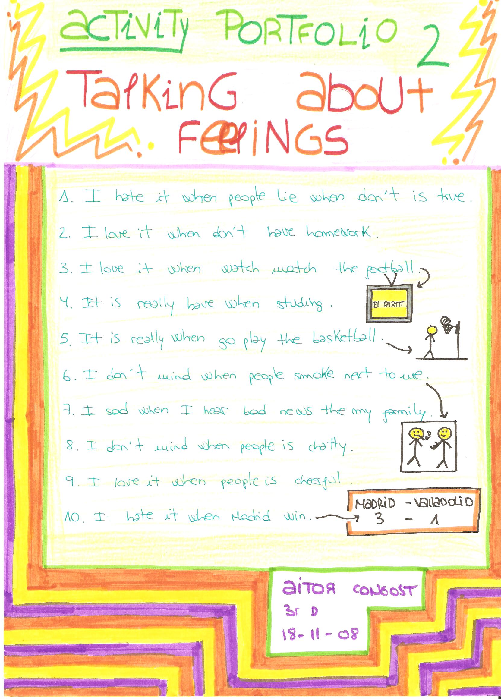 Adjectives: alone (sol), jealous (gelós), afraid (espantat), dark (fosc), courageous (coratjós), furious (molt enfadat), hit (colpejar).