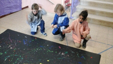 Som pintors General, Primer19 febrer 2016Sense comentaris Els nens i nenes de primer estem treabalant Jacksom Pollock. Ens ho pasem pipa!