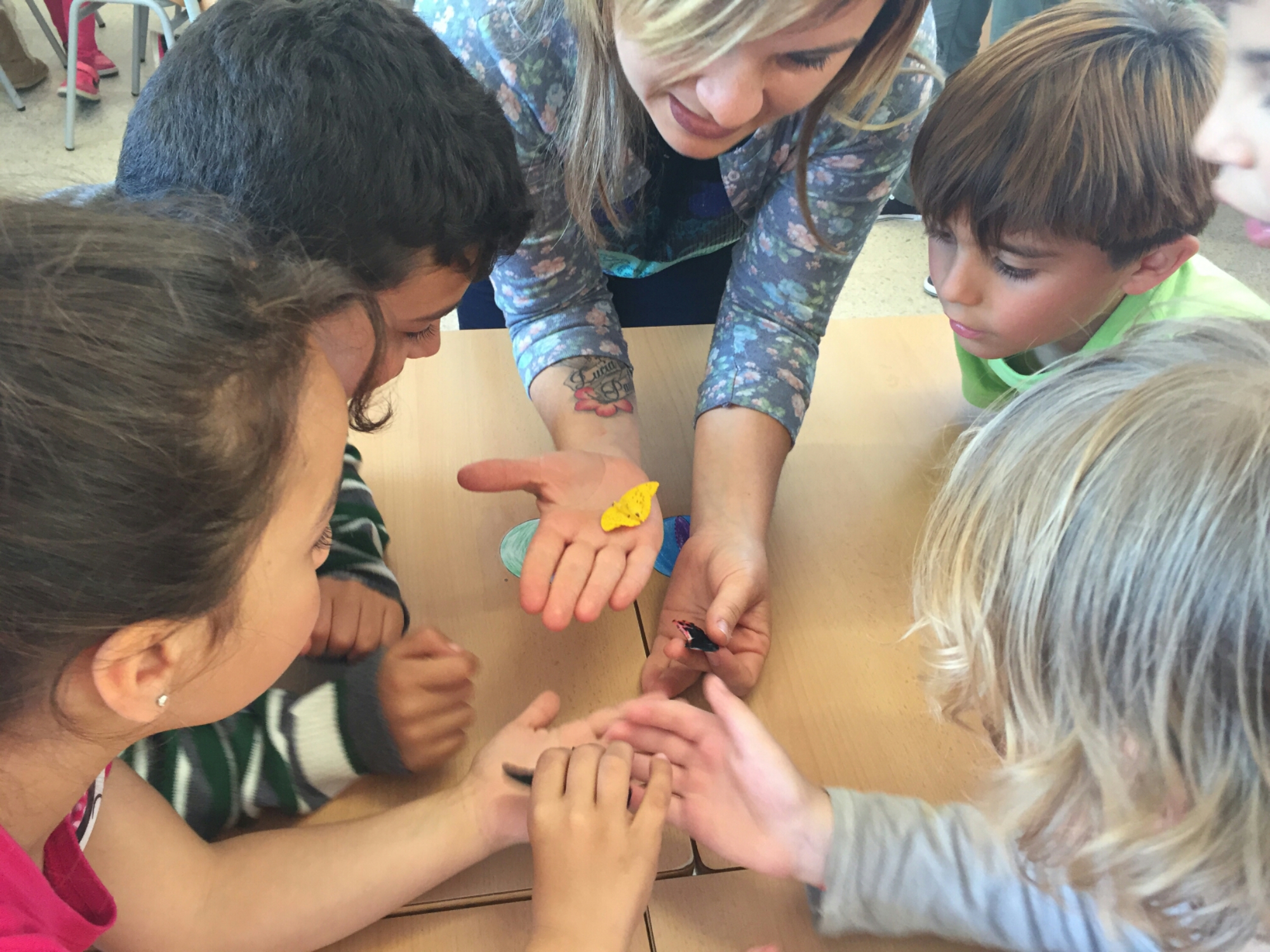 El passat mes d’Abril vam rebre a la classe de 1r B els papes convidats de la Paula. Ens ho vam passar d’allò més bé, vam aprendre coses de la visita que va fer la Paula amb els seus papes al Butterfly Park, ens van ensenyar unes fotos xulíssimes dels animals que van veure allà i, a més a més, ens havien preparat un taller per fer les nostres papallones. Moltes gràcies per la visita!!!!