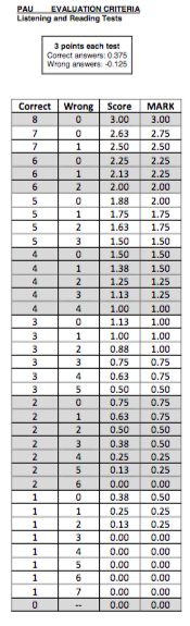 – Grammar (1 punt) : s’avalúa l’ús correcte d’estructures morfològiques i sintàctiques, i la varietat i complexitat d’estructures emprades.