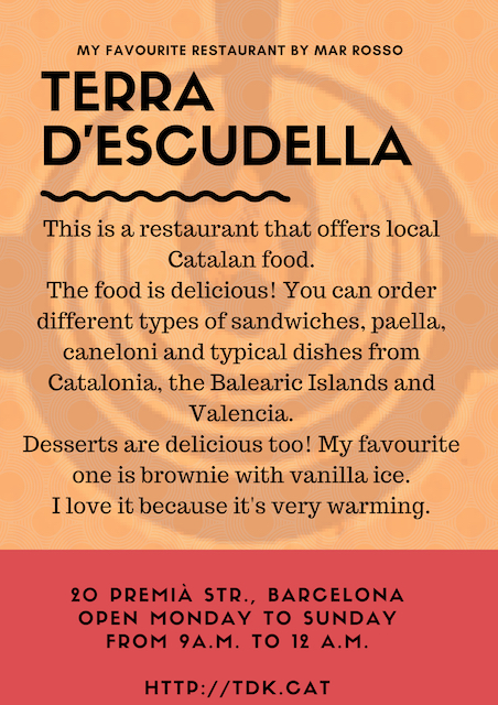 II. Think about a restaurant in Sant Boi you want to recommend to your classmates. Write a review following these steps: