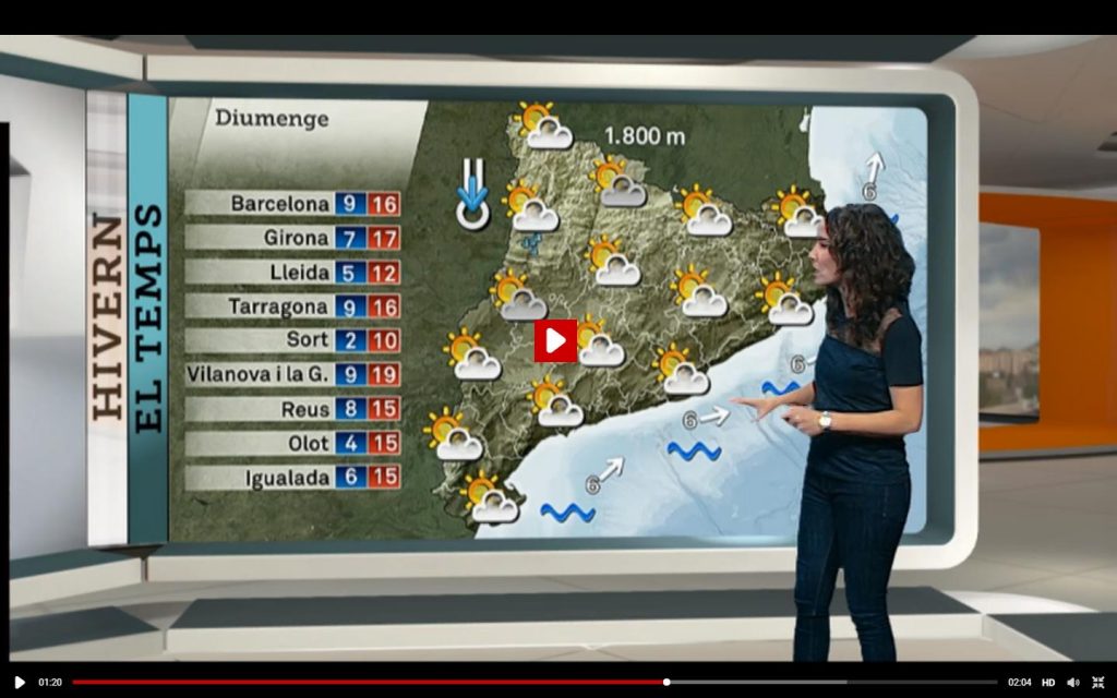 • Segons aquest mapa del temps. Quin temps farà aquest diumenge a la comarca d’Osona?