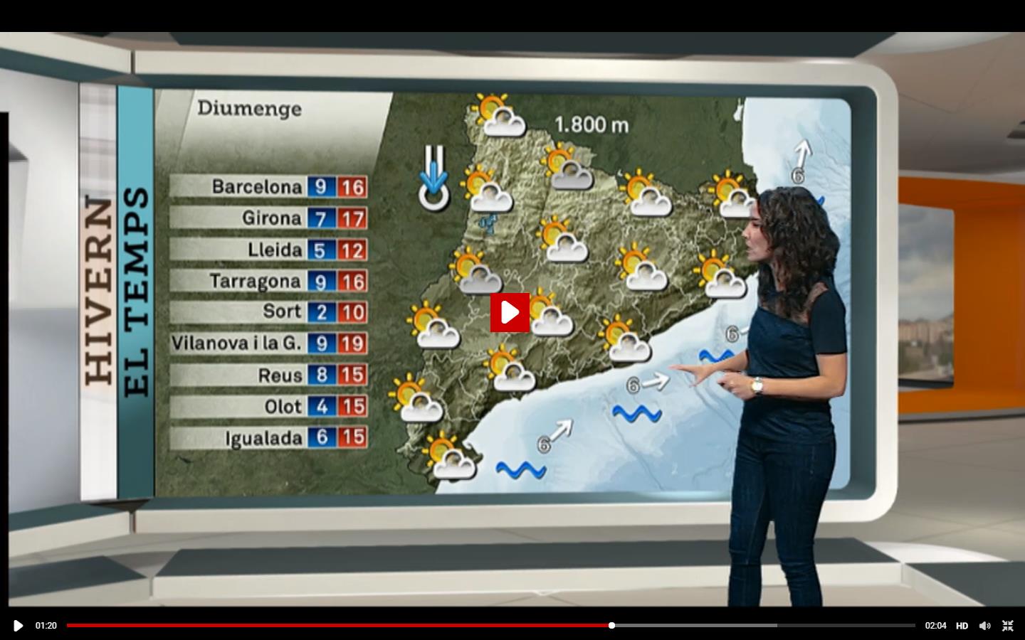 • Segons aquest mapa del temps. Quin temps farà aquest diumenge a la comarca d’Osona?
