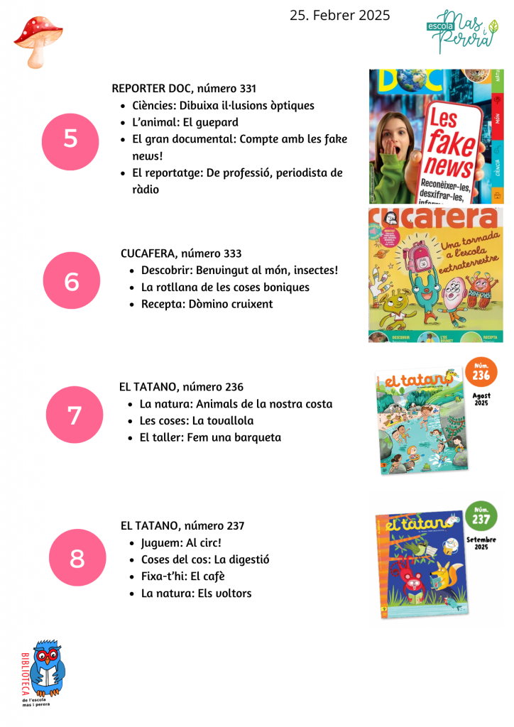Heu sentit a parlar mai del Partenó? Coneixeu el detectiu Conan? Vols saber què són les fake news? Vols cuinar un dòmino cruixent? Vols sé un expert amb la digestió? Trobareu les respostes a totes aquestes preguntes i més, en les revistes que ens han arribat d’aquest mes de SETEMBRE.