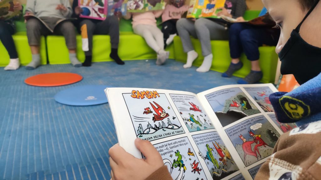 En motiu del dia de la Biblioteca que es va celebrar el passat 24 d’octubre, tots els infants de l’escola van explicar què és per a ells i elles la Biblioteca del Mas i Perera.