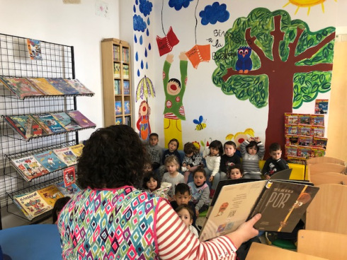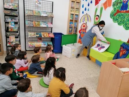 Aquesta setmana els alumnes de P4, durant la sessió de Biblioteca, els hi han explicat el conte “L’erugueta peluda” d’Eric Carle.