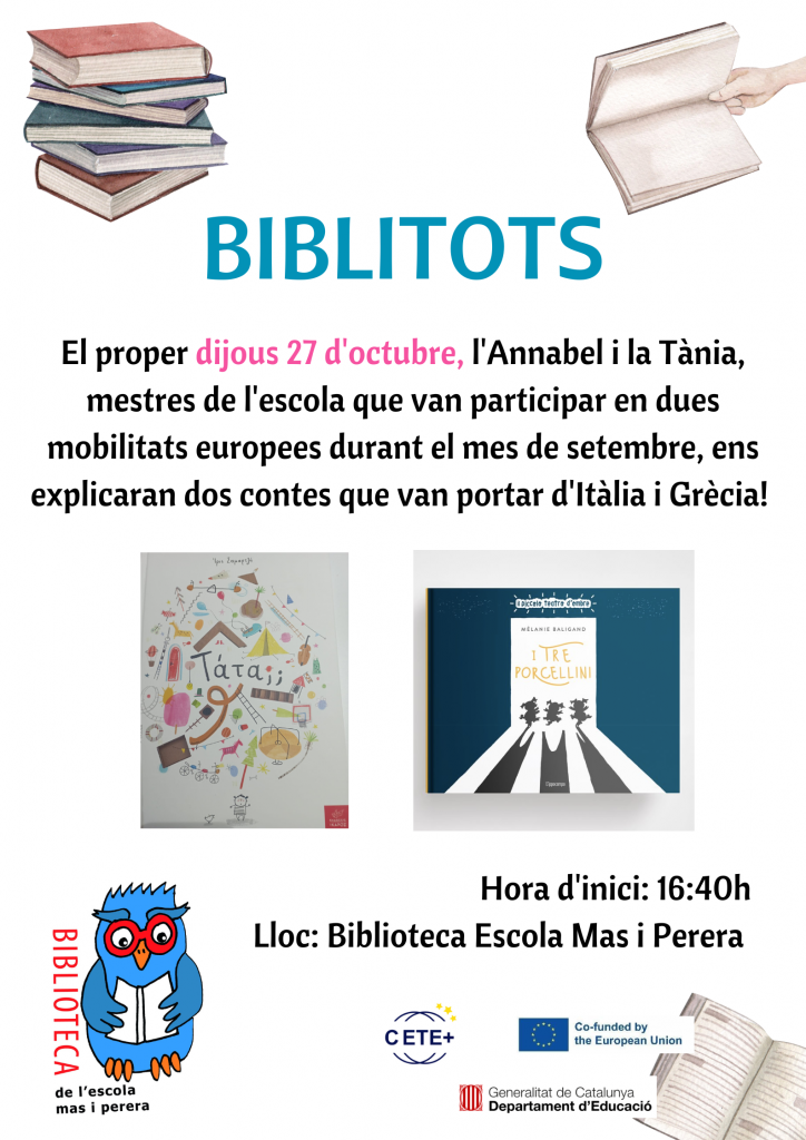 Avui hem celebrat a l’escola la sessió de transferència de l’equip de treball Erasmus CETE+ 22 de Biblioteca escolar Puntedu amb les escoles participants en aquest projecte juntament amb les dues referents del Programa de Biblioteca del Departament.
