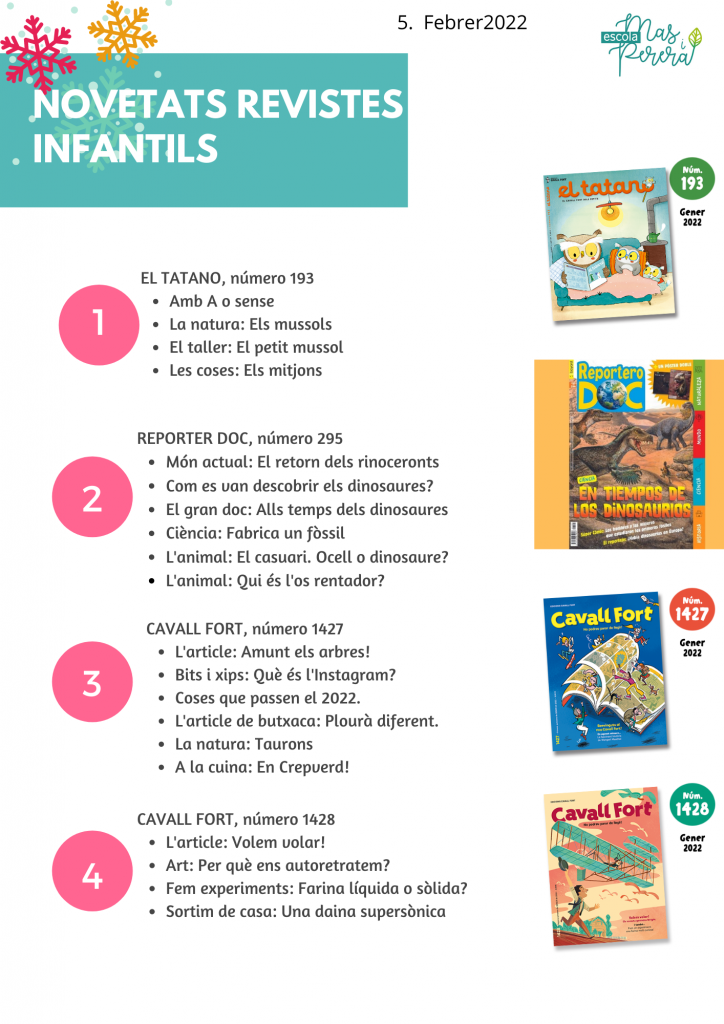 Voleu conèixer més coses sobre el tiranosaure rex? I sobre la sabana al llarg de les estacions? O…voleu saber qui era el Henri Rousseau? I si us preguntem pel científic Pasteur; sabeu qui era? Trobareu les respostes a totes aquestes preguntes i més, en les revistes que ens han arribat d’aquest mes de setembre!