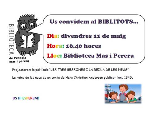 Recordeu que durant aquesta setmana podeu resoldre el segon enigma que trobareu a la Biblioteca de l’escola i que aquest divendres projectarem la pel·lícula de “Les tres bessones i el llibre de la selva”.
