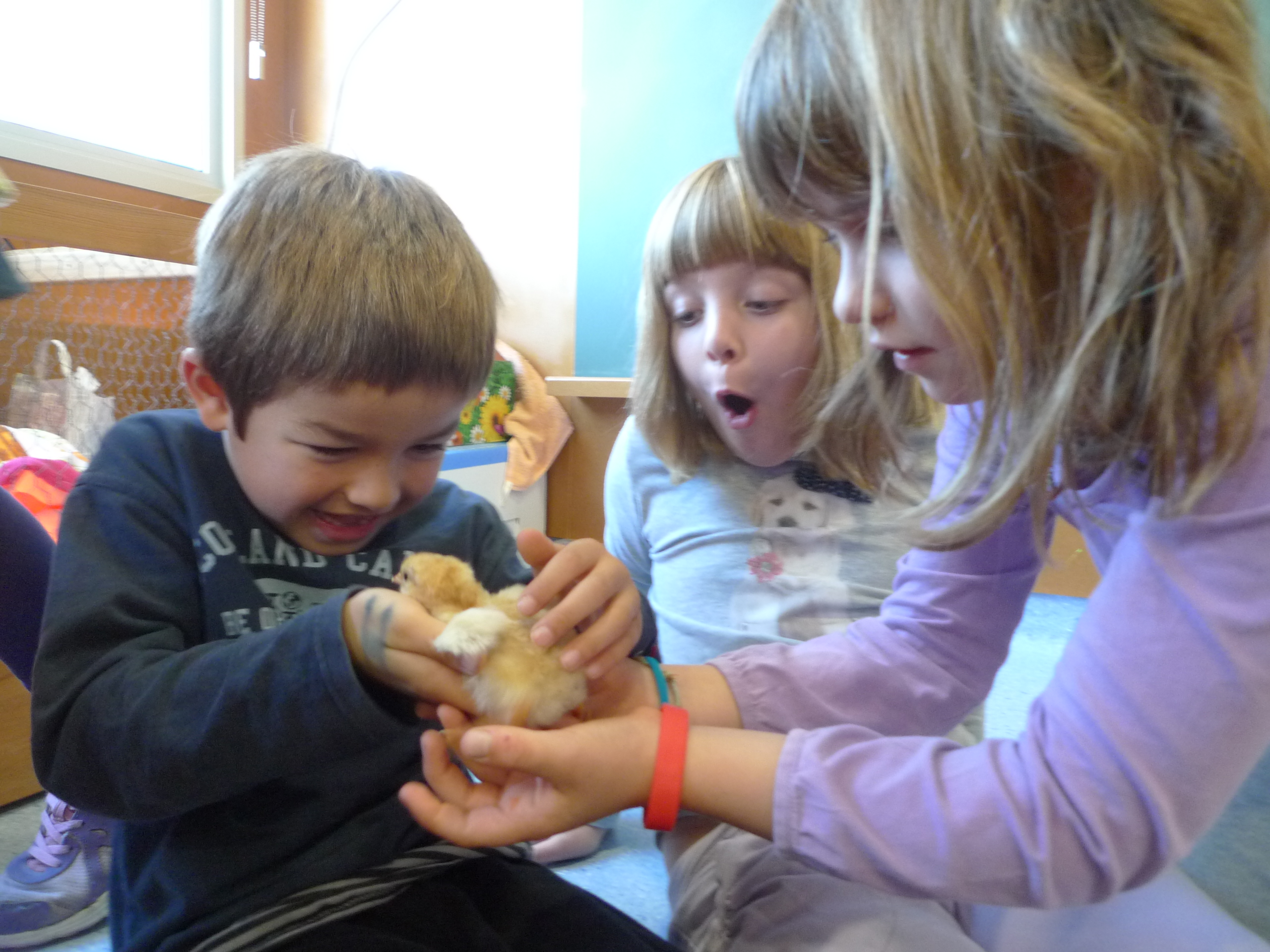 El centre de recursos ens ha deixat una incubadora. Hem viscut l’experiència interessant de veure néixer un pollet. Hem après que els ous han d’estar fecundats, que s’han d’anar girant i que cal esperar uns 21 dies perquè neixi. I així ho vam fer i va néixer el primer pollet, en SEP. La valoració de tot plegat és molt bona.