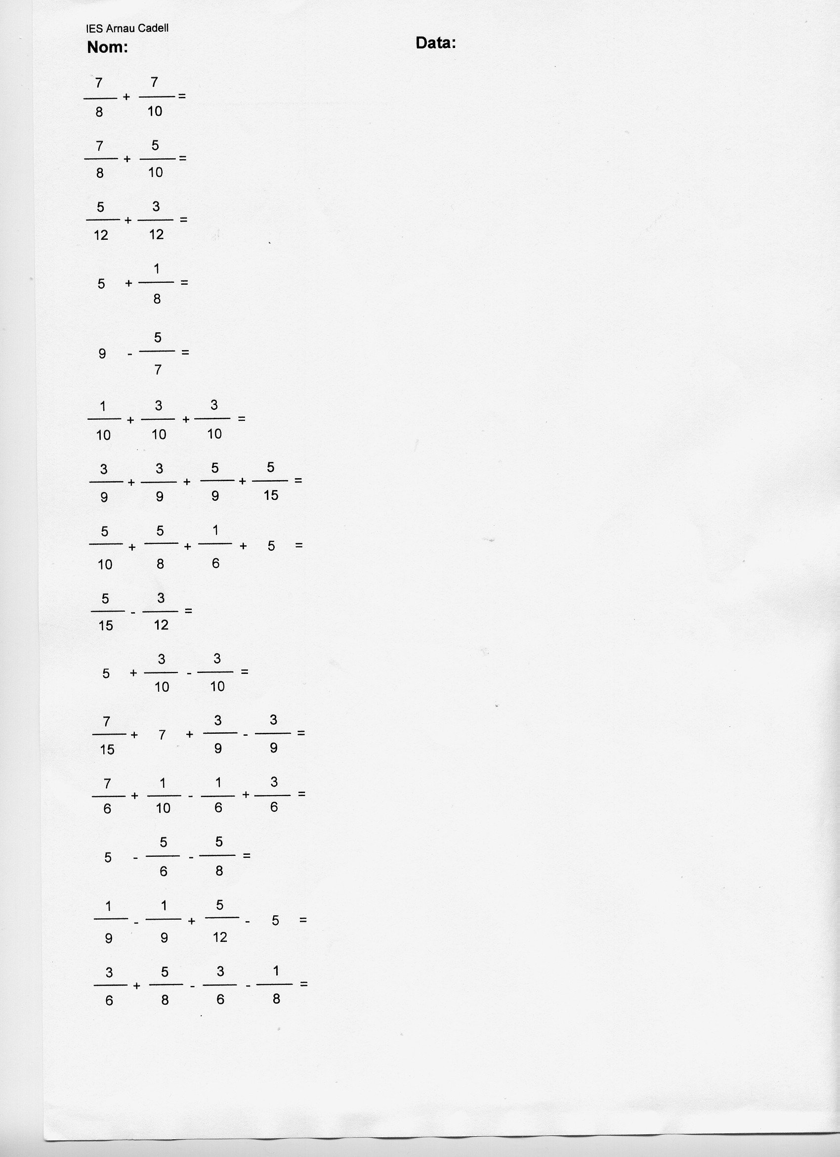 Full d’operacions combinades, per repassar la prioritat d’operacions. Només nombre naturals.