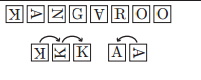 4-L’Andreu ha escrit cadascuna de les lletres la paraula KANGAROO en cartolines quadrades que contenen una lletra cada una. Malauradament, algunes cartolines s’han mogut i cal endreçar-les. Girant-la dues vegades ha pogut corregir la lletra K, i girant-la una vegada ha pogut corregir la lletra A (observeu el dibuix). Quants girs, com a mínim, ha hagut de fer en total per a corregir totes les lletres?.