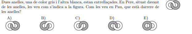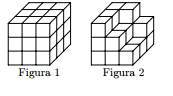 9-. La Diana té construït un cub de 3 × 3 × 3 (figura 1). La Natàlia volia compondre un cub igual que el de la Diana, però se li han acabat les peces i s’ha quedat amb la construcciò que es veu en la figura 2. Quants cubs petits li han faltat per a assolir l’objectiu? A) 5 B) 6 C) 7 D) 8 E) 9