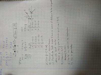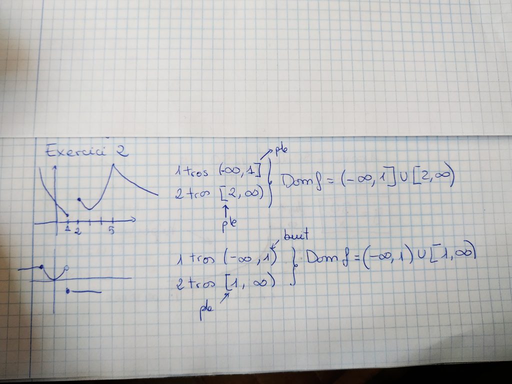 Si és una funció a trossos s’escribirà cada tros, posant claudator si el punt està ple i parèntesis si està buit. Mira la gràfica: