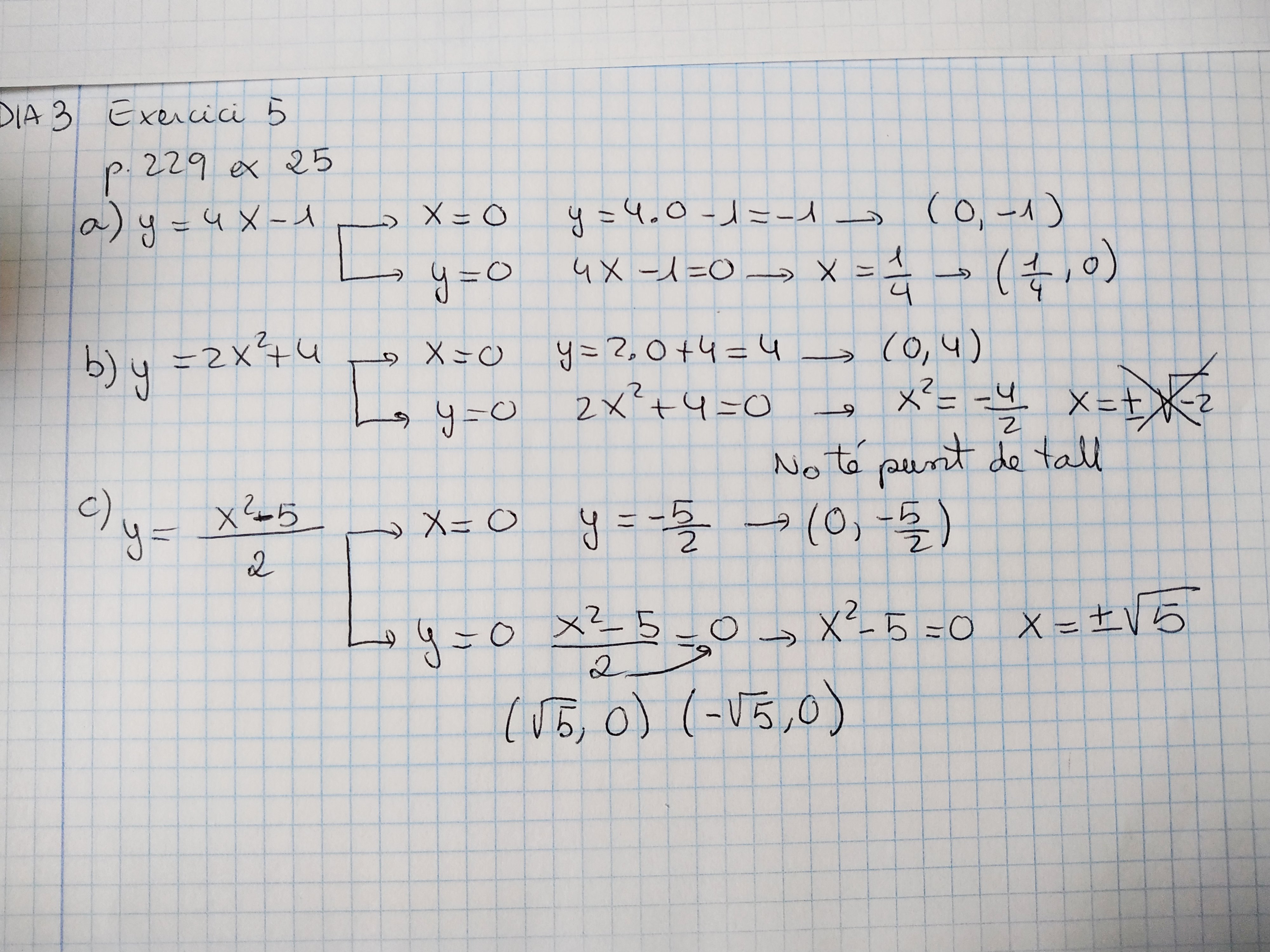 p.229 ex 25, troba els punts de tall en les abscisses i en les ordenades
