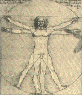 En aquest gràfic les proporcions entre les diferents parts del cos són proporcions àuries. Per exemple, estirant mans i peus i fent el centre el melic es dibuixa una circumferència. El quadrat té per altura el cos que coincideix amb la longitud entre els extrems dels dits de les dues mans quan els braços estan extesos i formant un angle de 20º amb el cos. El quocient entre l’altura de l’home (costat del quadrat) i la distància del melic a la punta de la ma (radi de la circumferència) és el nombre auri Aquest dibuix de Leonardo da Vinci que representava l’home perfecte va servir per il·lustrar el llibre La Divina Proporció de Luca Pacioli editat el 1509 on es descriuen quines han de ser les proporcions en les construccions artístiques.