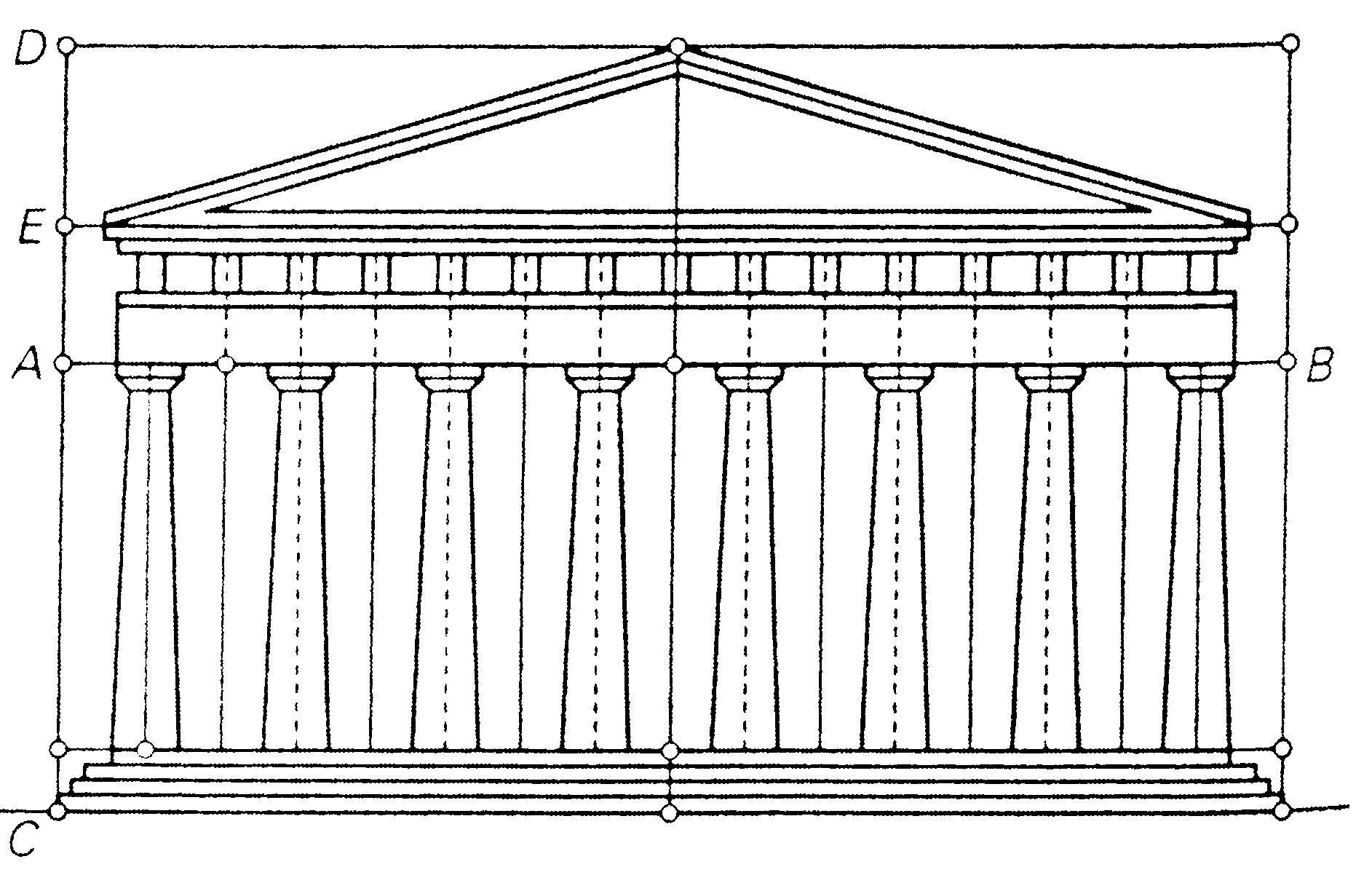 La façana del Partenó d’Atenes (447-432 aC) és un rectangle auri perfecte; de la mateixa manera en els diferents elements de l’edifici: