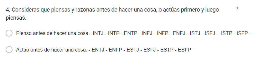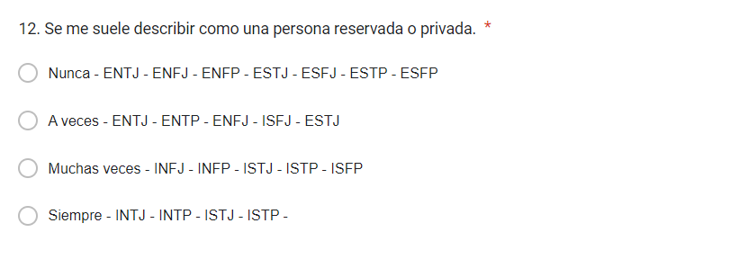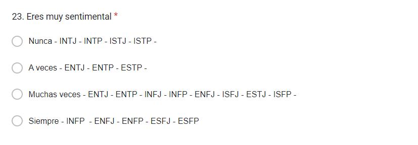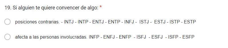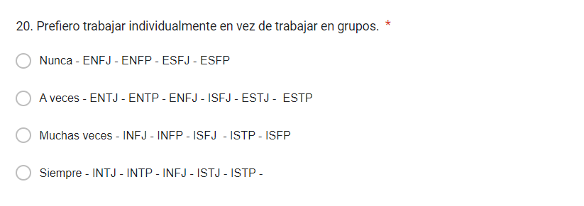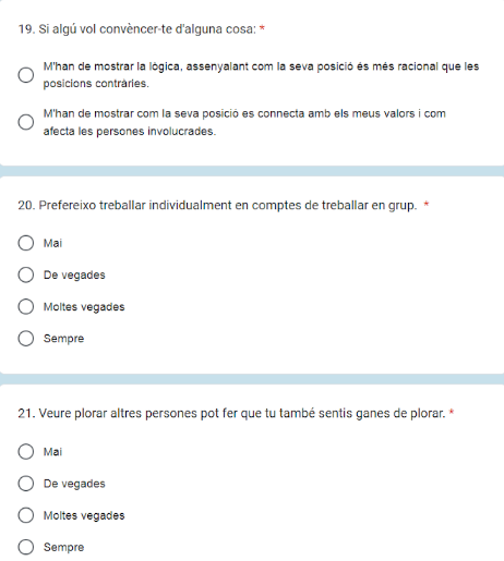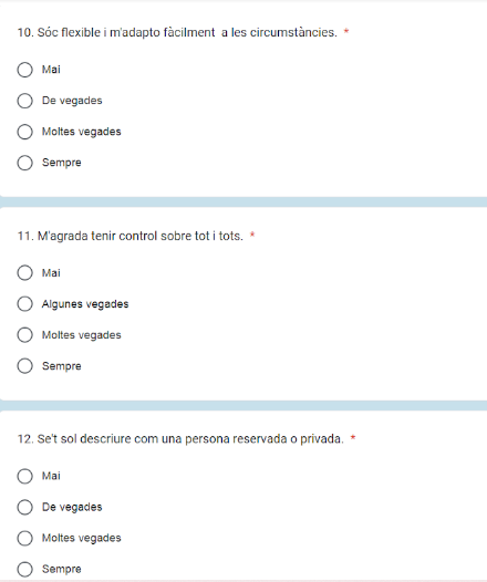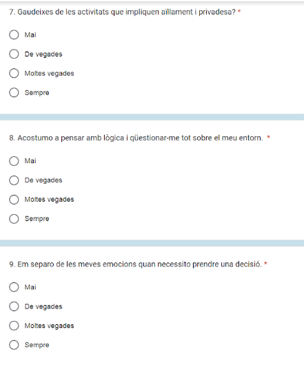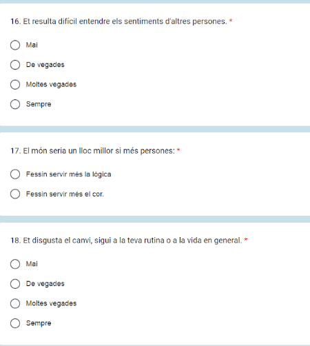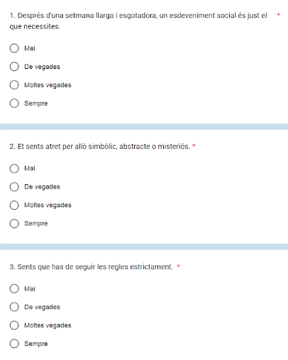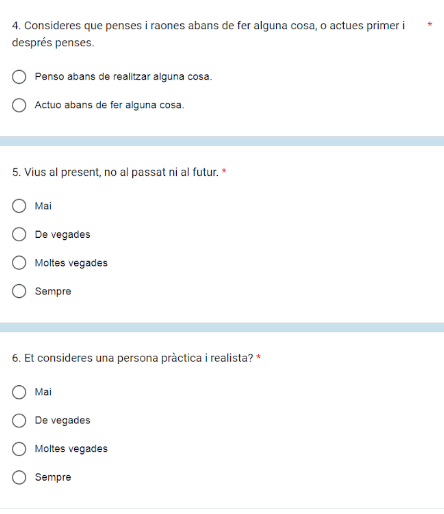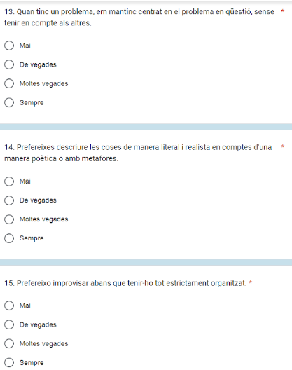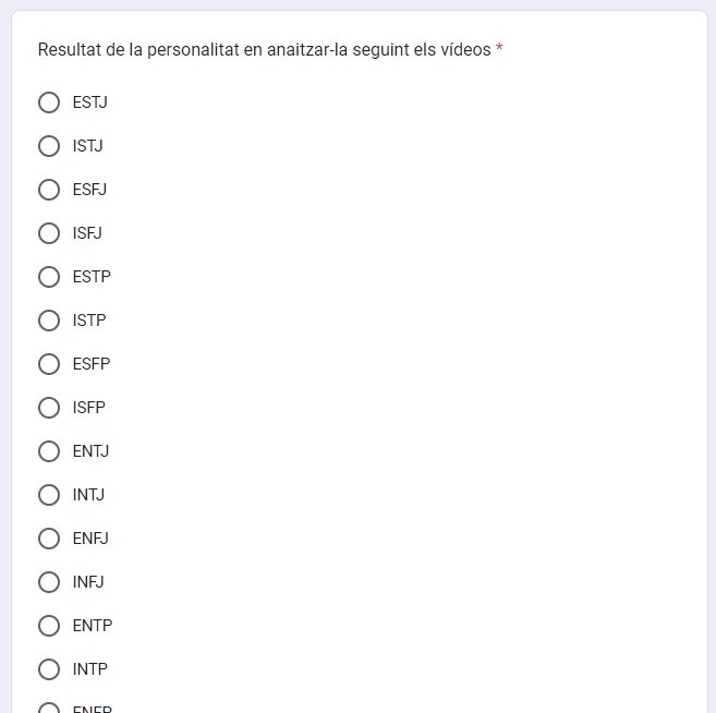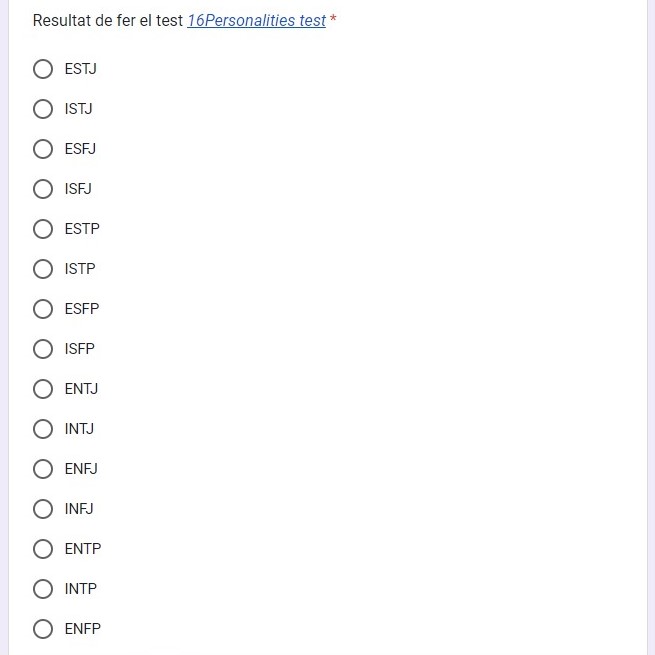 Formulari “Estudi del comportament dels 16 tipus de personalitat MBTI“