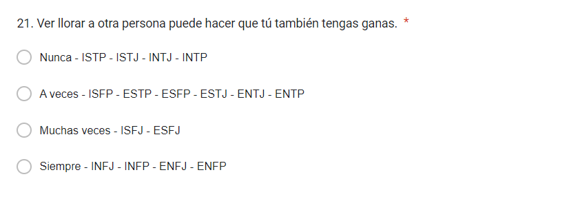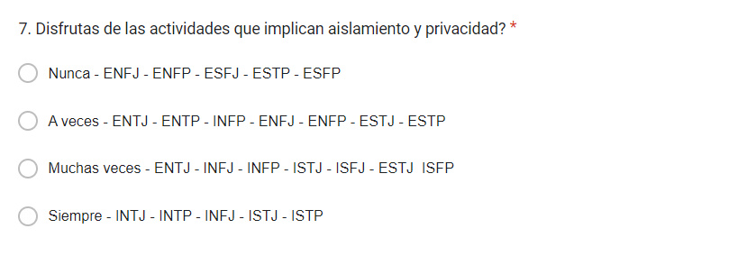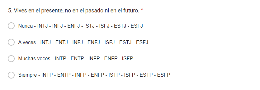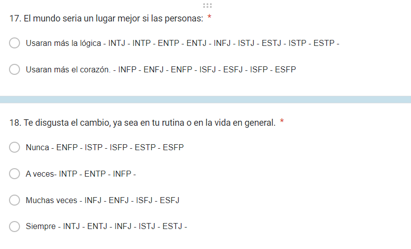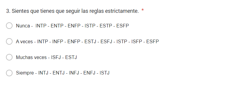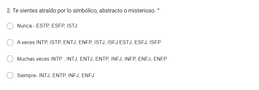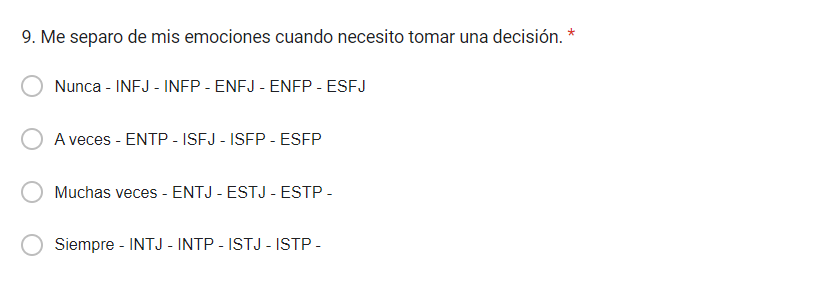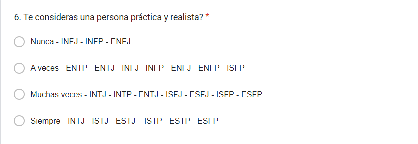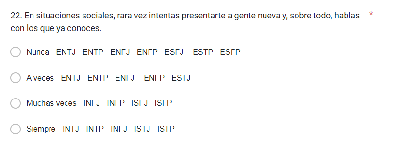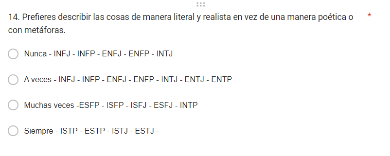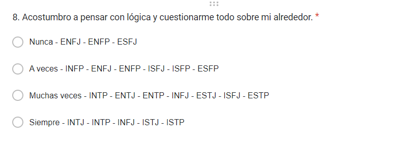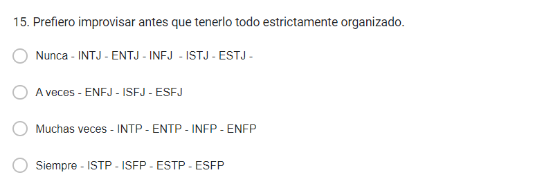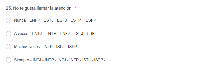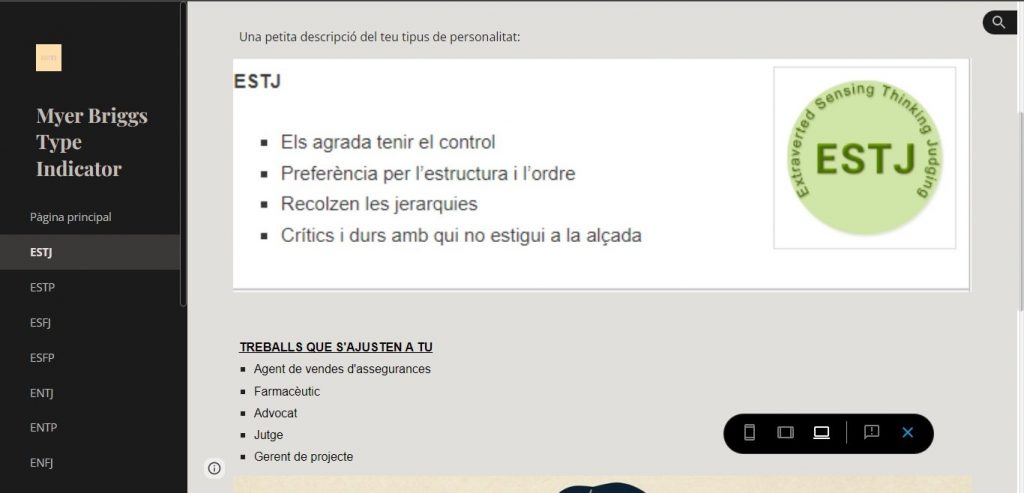 Formulari “Estudi del comportament dels 16 tipus de personalitat MBTI“