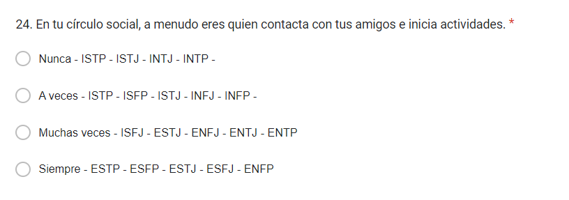 Formulari “Estudi del comportament dels 16 tipus de personalitat MBTI“