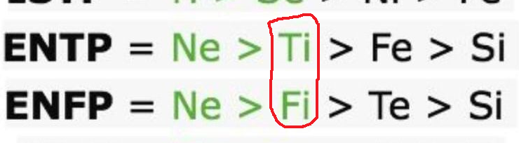Com veiem, l’individu té més amunt la funció Fi. Per tant, podem descartar el tipus ENTP, ja que, en segon lloc, té la funció Ti. L’individu analitzat és ENFP.