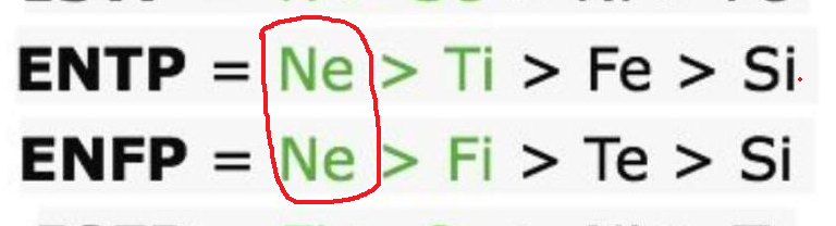 2. Imaginem que l’individu se sent més identificat per la funció Ne, i l’escull. El següent pas és localitzar la funció escollida, en aquest cas Ne, a la primera posició en la taula dels ordres de les funcions.