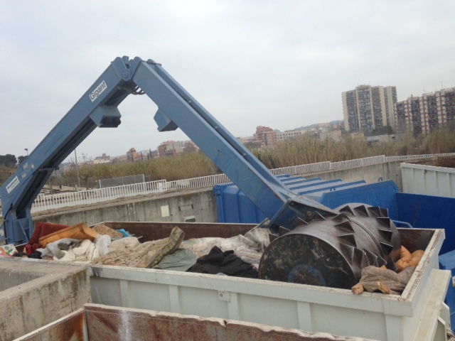 Vam tenir molta sort perquè vam veure una gran i divertida màquina que aixafava els sofàs, matalassos, cadires… que ja no es podien reutilitzar