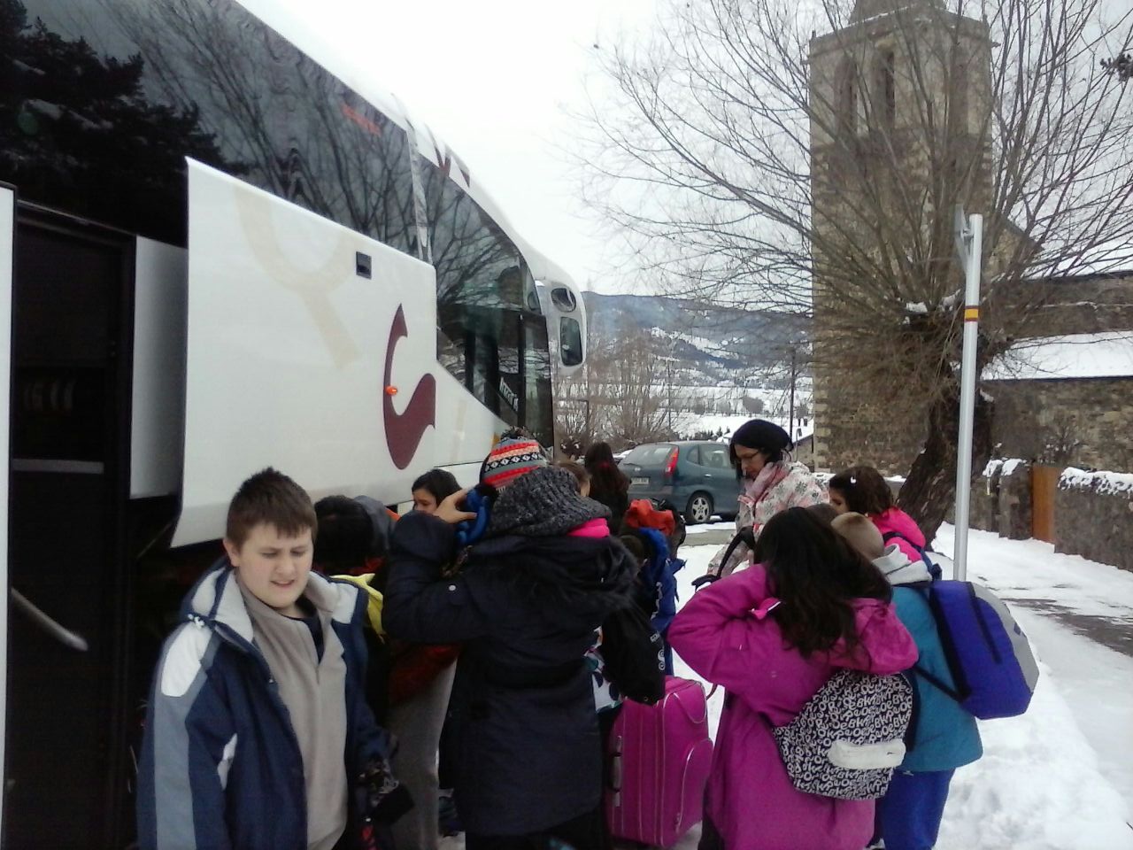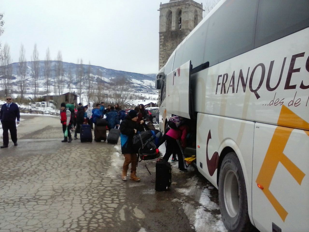 els nens i les nenes de sisè ja han arribat a Llívia. Estan descarregant les maletes i organitzant habitacions.