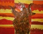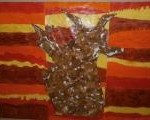 Un cop envernissat i sec el cel, vam dibuixar aquests arbres amb pintura negra. Cada nen triava el tipus d’arbre que volia fer.